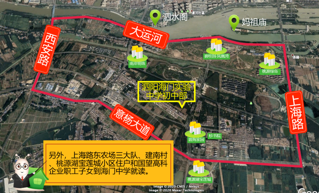 施教范围:东至泗塘河,北至银河路,西至繁荣路,南至大运河。