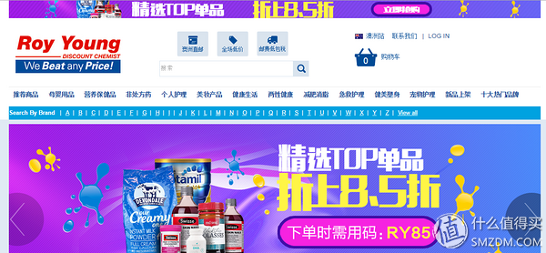 澳洲Roy Young 药房是澳洲大型综合类药房,2015年11月Roy Young药房中文站正式上线,所售商品涵盖母婴用品,保健品,护肤品,家庭日用品等领域,中文站支持支付宝付款,所有商品澳洲直邮,全站包税,直邮运费为首千克AU$8,续重每0.5kgAU$4。全中文界面跟在淘宝上买东西一模一样,所以及不就不需要海淘教程这种东西了。网站常有优惠,优惠获取方式:注册账号订阅邮件、关注微博微信、关注张大妈。无需上传身份证,但需填写身份信息。