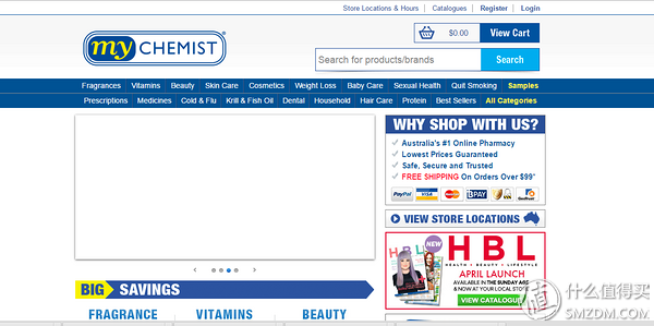 澳大利亚最大的药房,实体店遍布各地,线上线下优惠同步,网站优势在于品牌齐全应有尽有。暂时没有中文站,支持国卡但不支持银联及支付宝,可直邮但不包税直邮运费AU$24.16起,买的越多运费越划算,若选择转运,在澳大利亚国内满AU$99免邮,不满AU$99收取运费AU$8.95,鉴于直邮运费贵且不包税,所以购买时建议转运。网站常有优惠,优惠获取方式:注册账号订阅邮件、关注微博微信、关注张大妈。