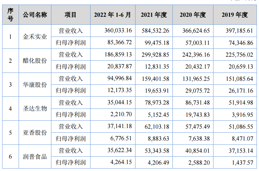 亚香股份主要为天然香料、合成香料和凉味剂;华康股份主要为木糖醇、山梨糖醇、麦芽糖醇、果葡糖浆;金禾实业主要为甜味剂; 圣达生物主要为乳酸链球菌素、纳他霉素等
