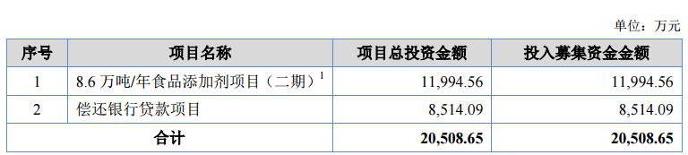 8.6 万吨/年食品添加剂项目(二期)暨新建 6,500 吨/年山梨酸生产线及附属生产设施项目