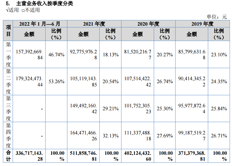 报告期内,公司主营业务收入没有明显的季节性特征。公司下半年实现的主营业务收入占比分 别为 52.55%、52.99%、61.34%,主要由于国外圣诞节、中国的春节以及元旦集中在年底和年初, 节假日期间的食品饮料消费需求旺盛,食品生产厂商一般需要提前 2-3 月开始备货生产,因此下半年度尤其第四季度对食品添加剂的需求相对较多。